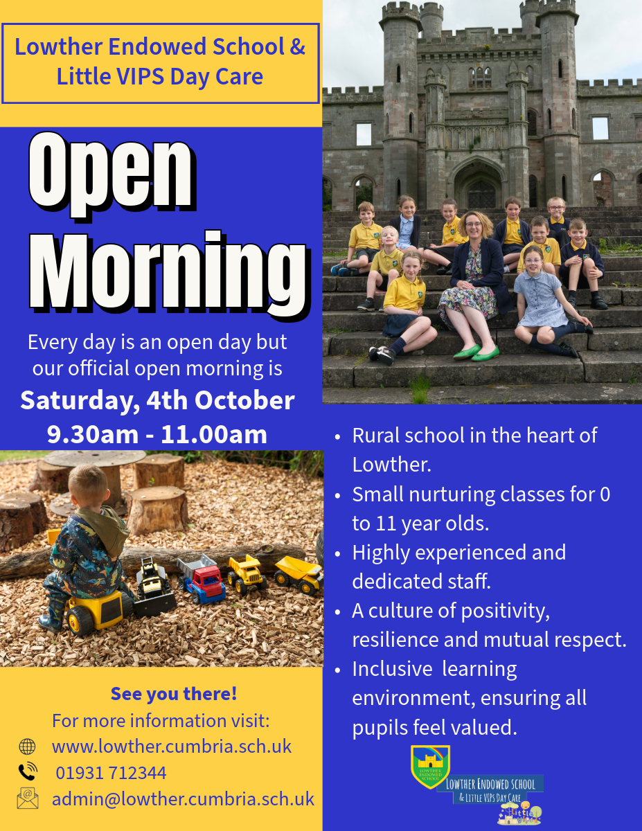 We are delighted to invite you to our Open Morning on Saturday, 4th October, from 9:30am to 11:00am. This is a great opportunity to look around our wonderful school and see all that we have to offer. If you know any families who may be looking for a nursery place from January 2026 or reception place for September 2026, please do share this date with them — or bring them along! Further open sessions will also be held throughout the autumn term.