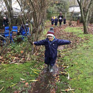 We are also fortunate to have such a wonderful outdoor area and we do a lot of our learning outside; whatever the weather!  We also have an amazing wildlife area where we make dens, look for mini-beasts, explore, and use our imagination.  Our outdoor space is now even more exciting, as we have a new sandpit, water run, music station, book nook, huge balance scales, den-making equipment and so much more!